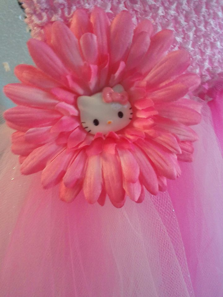 Pink Hello Kitty Tutu Dress Size 12M - 3T Pink crochet halter top piece, pink and white tulle skirt piece.